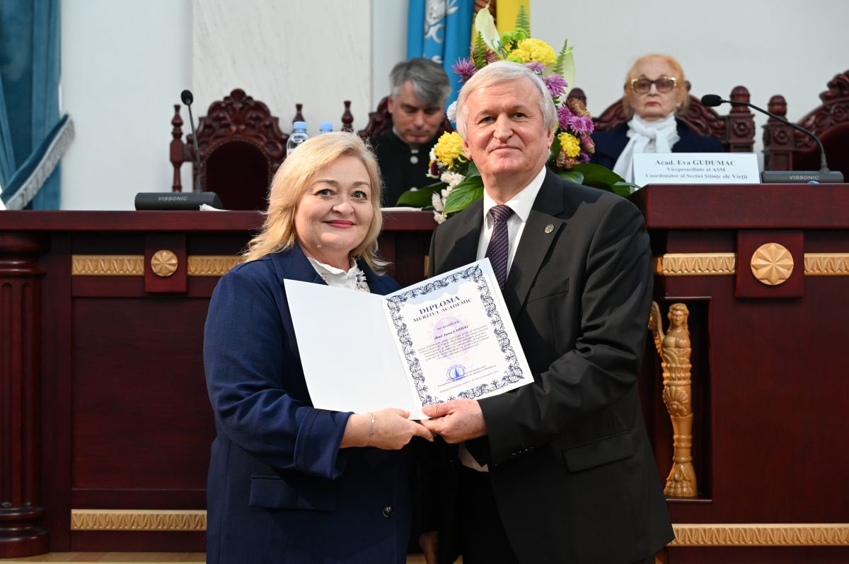 Gala Laureaților AȘMUniversitatea de Stat de Medicină şi Farmacie „Nicolae Testemiţanu” a fost menționată cu Diploma de Recunoștință a Academiei de Științe a Moldovei (AȘM), în semn de apreciere pentru promovarea excelenței în educație și cercetare în domeniul medicinei și farmaciei, pentru contribuție semnificativă la instruirea și formarea tinerei generații în spiritul valorilor culturale naționale, precum și cu prilejul celei de-a 80-a aniversări de la fondarea instituției. Diploma i-a fost înmânată prim-prorectorului Olga Cernețchi de către președintele AȘM, academicianul Ion Tighineanu, în cadrul Galei Laureaților Premiilor AȘM, organizată anual în contextul Zilei Internaționale a Științei pentru Pace și Dezvoltare, pe data de 10 noiembrie 2025.